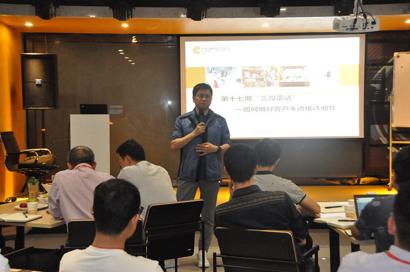 此次“三哥茶話”是自2016年開展以來的第十七期活動(dòng),由營銷總監(jiān)于占水主持。雖然是下班時(shí)間,但活動(dòng)現(xiàn)場(chǎng)依舊爆滿。來自市場(chǎng)交付線等部門的50多位同事歡聚一堂,針對(duì)“我們出差應(yīng)該做哪些準(zhǔn)備?客戶來公司應(yīng)該如何做接待?我們現(xiàn)有的接待中做的好與不好的地方”三個(gè)主題進(jìn)行熱烈討論和交流,智慧廣播產(chǎn)品部李智勇、公共廣播渠道發(fā)展部陳鴻、技術(shù)中心朱曉麗、客戶服務(wù)部楊昭進(jìn)、湖南特區(qū)曹志華等多位同事積極發(fā)言,各抒己見。